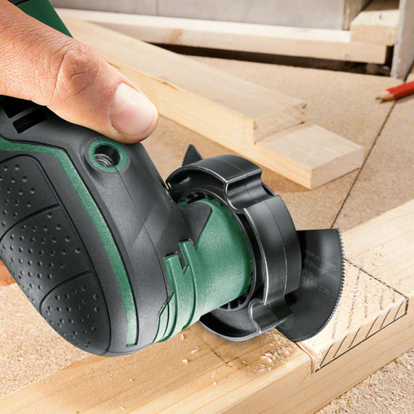 Az univerzális csavarral ellátott, mágneses szerszámbefogó révén kényelmesen és fáradságmentesen cserélhető minden szerszám. A vágási mélység pontos betartását a 4 fokozatú mélységütköző biztosítja. A készülék precíz és lágy bemerítésre képes a Curved-Tec merülőfűrészlapok lekerekített vágóéleinek köszönhetően. Egyenletesen nagy teljesítményre képes terhelés alatt is a Bosch konstans elektronika révén.