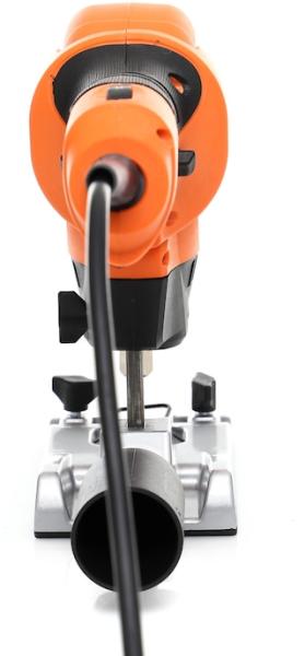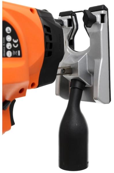 Az ergonómikus markolata kényelmes és biztonságos a munka közben. A vésőhöz hozzászerelhető egy porelszívó is, ami a csomag része. A porelszívóval tisztán tartható a munkafelület vésés közben.